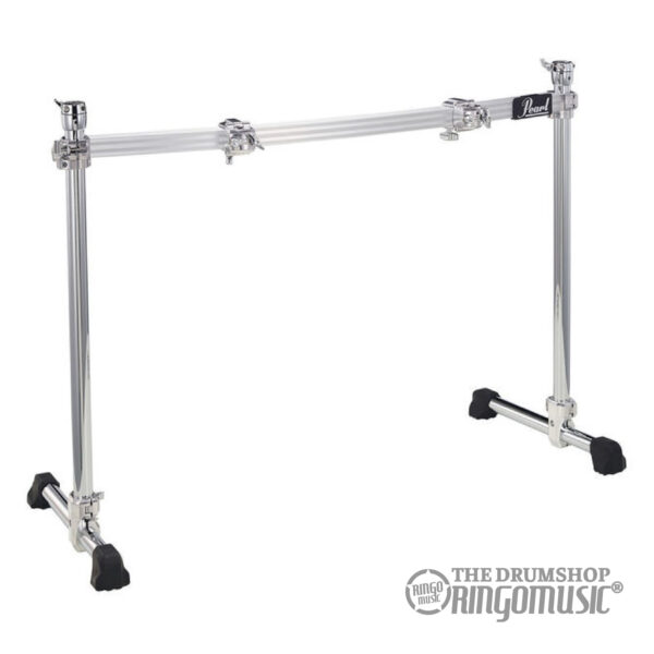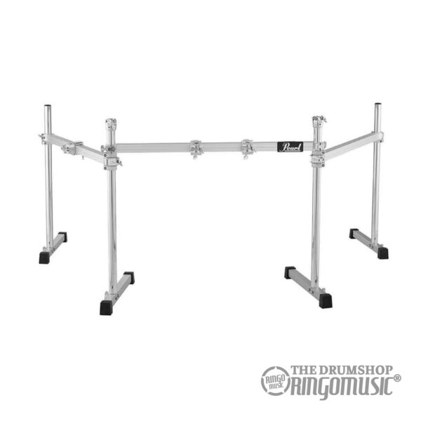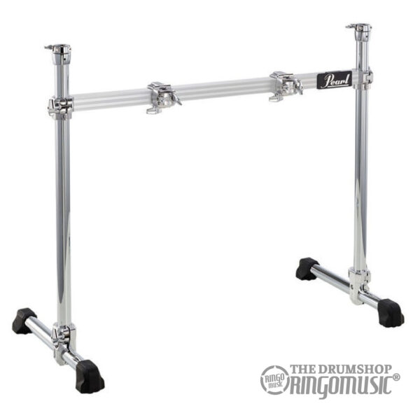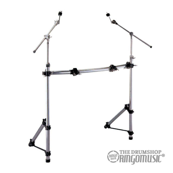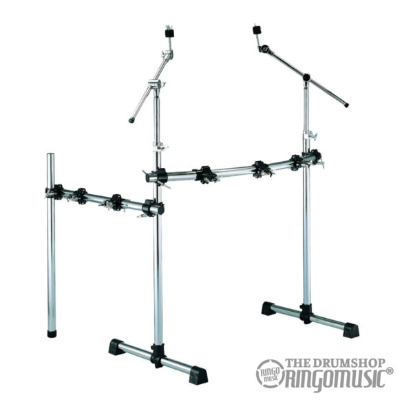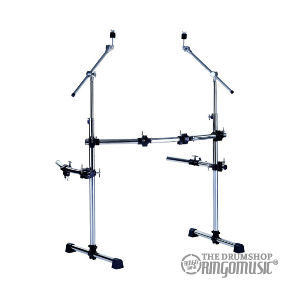 Informazioni aggiuntive: Rack per batteria standard ultra robusto, Struttura con due tubolari verticali e tubo centrale, Include due reggipiatti e due clamp per montaggio fusti, Finitura cromata