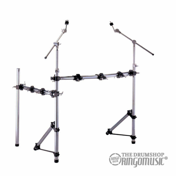 Caratteristiche: Barra curva frontale da 90cm, tubo verticale singolo da 85cm, con giunto pressofuso (1,9cm di diametro) su cui รฉ possibile montare asta reggipiatto, 1 barra quadrata da 45cm, 1x morsetto reggitom, 3 memorie, 2 piedini in gomma