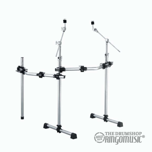 Caratteristiche: Barra curva frontale da 110cm, tubo verticale singolo da 85cm, con giunto pressofuso (1,9cm di diametro) su cui รฉ possibile montare asta reggipiatto, 1 barra quadrata da 45cm, 1x morsetto reggitom, 3 memorie, 2 piedini in gomma